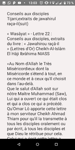 La sagesse est l’art de mettre chaque chose à sa place. Elle est la base même du Soufisme car elle constitue la somme de toute l’éducation spirituelle. Dans la voie Tijaniyya où la sagesse tient une place infiniment importante, il est primordial que le disciple en soit imprégné. Voici à ce jour le joyau de ce qui a été créé dans le contexte de la discipline. La quête du disciple pour l’obtention d’un guide ; les qualités du guide ; la soumission du disciple et sa conduite en général. En un mot la perfection vers la connaissance de Dieu.