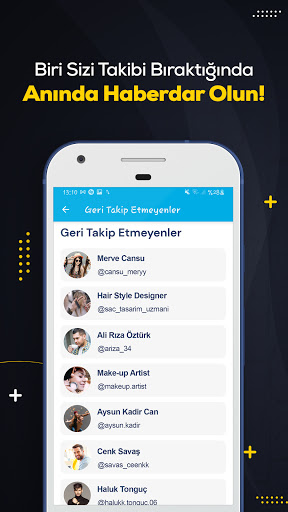 Anlık bildirimlerimiz sayesinde profilinizi stalklayan, sizi takip etmeyi bırakan veya engelleyen birisi olduğunda anında haberdar olun.