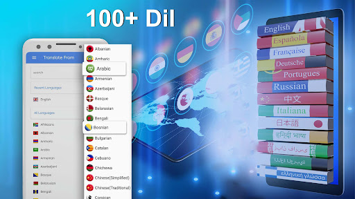 Bu Dil Çeviri uygulaması sadece basit bir ücretsiz dil çevirmeni değil, aynı zamanda metin ve ses girişi olan tüm dillerde bir uygulamadır. Çeviri herhangi bir dilden herhangi bir dile yapılabilir Çeviri ve çevirmen anlamı da olabilir. Bu Tercüman tüm diller uygulaması, Android Cihazınızdaki en güçlü çeviri aracıdır. Herhangi bir cümleyi veya ifadeyi herhangi bir dil çevirmenine çevirin ve metin çevirisi ve sesli dil çevirisi gibi bir dizi kullanışlı özelliğin keyfini çıkarın.