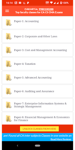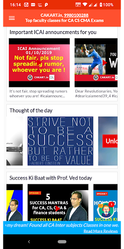 Ứng dụng này cũng cung cấp thông tin về tất cả các chủ đề cuối cùng quan trọng của CA -