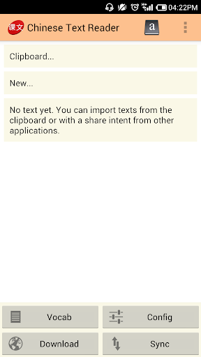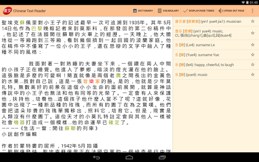 Đối với tất cả người học tiếng Trung phổ thông, trình đọc văn bản tiếng Trung là một ứng dụng nhằm mục đích cải thiện kỹ năng đọc của bạn. Ứng dụng này không tập trung vào việc dịch các câu mà nhiều hơn về việc đọc các văn bản dài hơn. Thật vậy, đọc sách và bài viết là điều cần thiết khi học một ngôn ngữ.