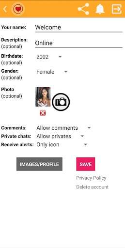 Well, when you first open the app, you can either log in with your Girls Live Video Talk account or complete a profile form to let others know a little bit more about you. The items in the profile are: Name, nickname, optional description about yourself, birthday, gender, and photo. You can also specify whether receiving comments or private messages are allowed or not OR Also You Can Log In with Google.