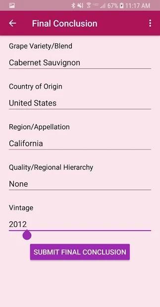 This is most useful for those studying and tasting for the Certified Sommelier examination for the Court of Master Sommeliers Americas. The application is modeled after and will only accept information in relation to the accepted grape varieties and growing regions for red and white wine that are used in the certified examination.