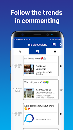 - Không có kiểm duyệt: Không ai có thể kiềm chế bạn những gì bạn có thể Và những gì bạn không thể viết trong các ý kiến. Với ứng dụng Hành tinh Thảo luận, bạn có thể bày tỏ bất kỳ ý kiến nào mà không bị hạn chế.