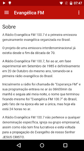 Đài phát thanh truyền giáo FM 100.7 không thuộc bất kỳ giáo phái, nhà thờ hoặc nhóm nào cũng như Nó không có mục đích sinh lợi và tập trung vào sự lây lan của Tin Mừng của Chúa Jesus Christ của chúng ta. Tin Lành. Ngay cả với sự xuất hiện của các đài truyền hình khác của cùng một phân khúc, 100.7 nổi bật để mang lại lịch sử của mình dấu ấn của hàng đầu.