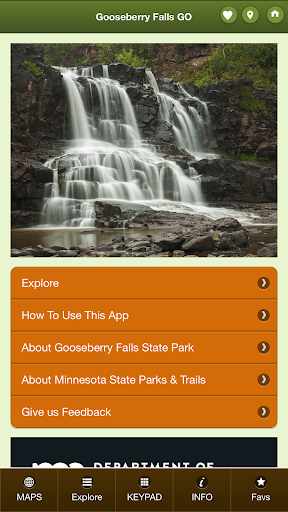 Tour Gooseberry Falls State Park như chưa từng có trước đây với ứng dụng Gooseberry Falls Go.Bạn sẽ khám phá nhiều tuyến danh lam thắng cảnh trong công viên, hãy thực hiện thử thách ảnh và học cách xác định cây và đá.Trên đường đi, bạn sẽ nghe thấy lịch sử ẩn giấu của các chàng trai CCC đã xây dựng Công viên tiểu bang, hãy khám phá cách những thác magnificent đó được hình thành, và lặn sâu hơn vào bản chất bao quanh bạn.Làm việc ngoại tuyến.Wi-Fi miễn phí có sẵn trong Trung tâm khách truy cập Thác Gooseberry để tải xuống ứng dụng.