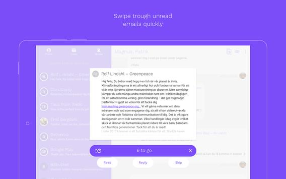 Get a preview of your unread emails and just swipe left or right, Tinder style, to either reply or dismiss an email.