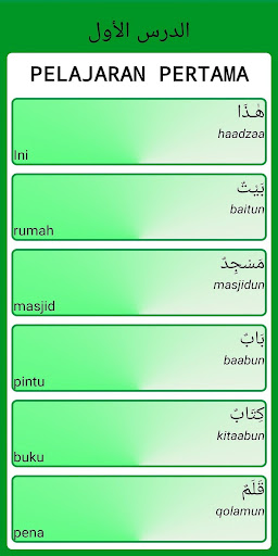 3.Latihan adalah Menu yang digunakan untuk murojaah kosa kata yang telah dipelajari di setiap bab.
