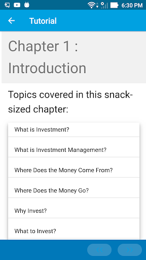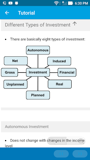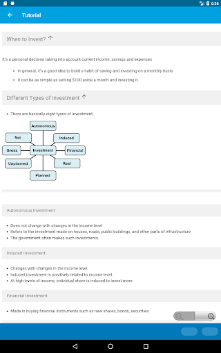 This app provides a quick summary of essential concepts in Investment by following snack sized chapters: