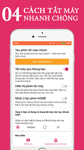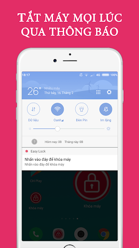 Tắt màn hình, khóa máy nhanh chóng và đơn giản mà không cần phải bấm phím nguồn. Chỉ cần một chạm tắt và khóa màn hình nhanh chóng.