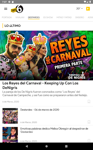 Thưởng thức tất cả các nền tảng kênh 6 trong cùng một ứng dụng.Tìm hiểu về tin tức, chọn môn thể thao yêu thích của bạn và quan sát giờ không giới hạn từ các chương trình truyền hình phổ biến nhất trong cả nước.