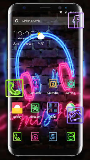 Cài đặt chủ đề Launcher Apus âm nhạc neon, làm cho điện thoại của bạn đặc biệt.