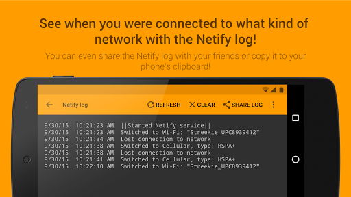 With the Netify Log you can see when, and what kind of network you were previously connected to. You can also copy and share the Netify Log with the developer or with your friends!