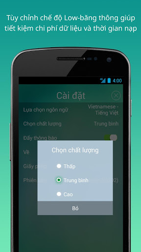 * Tiết kiệm thời gian tải về và chi phí với chế độ băng thông thấp.