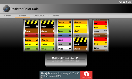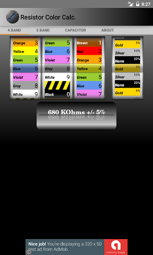 Fundamental electronics tool. Easy to use 4 band and 5 band resistor color code calculator. With colored rotatable wheels and tabs, it is easy to use and navigate.