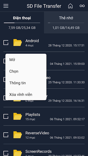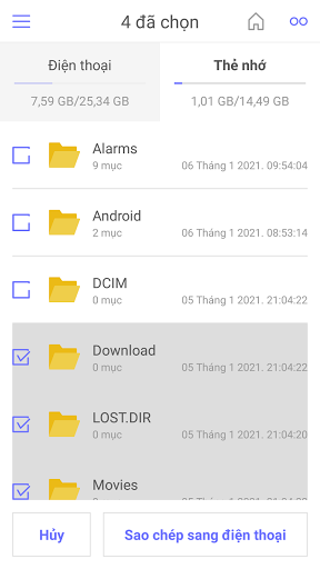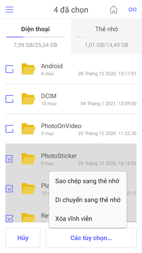 Di chuyển hoặc sao chép file từ điện thoại sang thẻ nhớ SD Card và ngược lại.