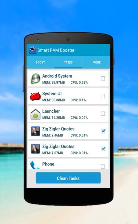 Simple to use, Smart RAM Booster kills tasks, frees up memory and optimizes your device speed. Just run the application to view a list of applications on your phone. You can select all the applications at once or individually, kill their process, free your phone memory and boost your Android device speed.