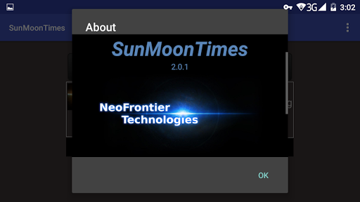 This app will display useful information about the sun and the moon. Like: Sunrise and sunset times for your location or any other location you set. Moonrise and moonset times. It will also graphically show the current phase of the moon along with a percentage illumination readout. It will also display the time of the onset of twilight and the end of twilight. Along with all that a neat time and date display is provided for use as a clock display.