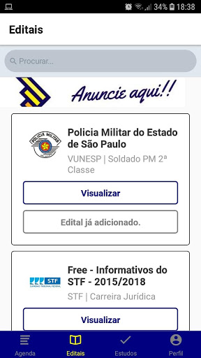 Nosso serviço abrange os principais editais do Brasil, divididos em áreas: FISCAL, TRIBUNAIS, ADMINISTRATIVA, POLICIAL, CARREIRAS JURÍDICAS etc. Se o edital procurado não estiver no nosso sistema, você pode solicitá-lo por meio do próprio aplicativo. Nossa equipe, inicialmente, irá atender aos editais que beneficiem o maior número de pessoas.