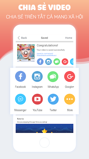 . Bạn muốn có một video clip để chúc mừng sinh nhật, chúc mừng năm mới hay một video clip lãng mạn để tặng người yêu...chỉ với vài thao tác đơn giản và ứng dụng sẽ giúp bạn giải quyết vấn đề đó trong tích tắc. Lựa chọn hình ảnh, chọn nhạc bạn yêu thích, chọn chủ đề, chỉnh sửa ảnh bằng các sticker ngộ nghĩnh đáng yêu, chọn các hiệu ứng video đẳng cấp là bạn đã có một video nhạc và ảnh với hiệu ứng đẹp!