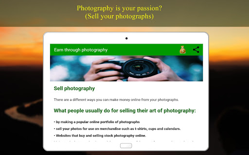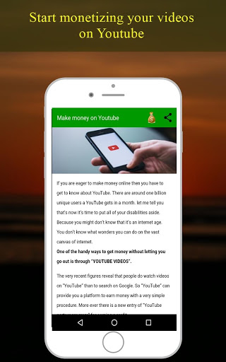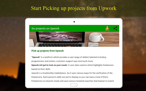 This app explains the ideas in details about how you can start and gain expertise in the chosen field, it explains what skills are needed (if any) and how much time is required to learn that skill after which you can easily make money online sitting at home. You don’t need to have many skills, just pure determination to succeed and to be ready to work hard.