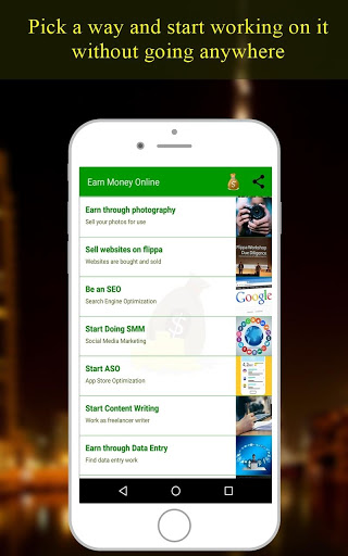On the main page of the application, you can scroll to search for ways and find the most suitable one after reading the description. Few of these ideas might require you to watch tutorials first such as i.t development and search engine optimization. The other jobs do not require any