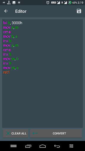 Get rid of continuously looking into manuals to find corresponding hex codes for your microprocessor programs. Feed your program to this app, and it will produce the hex codes for you!