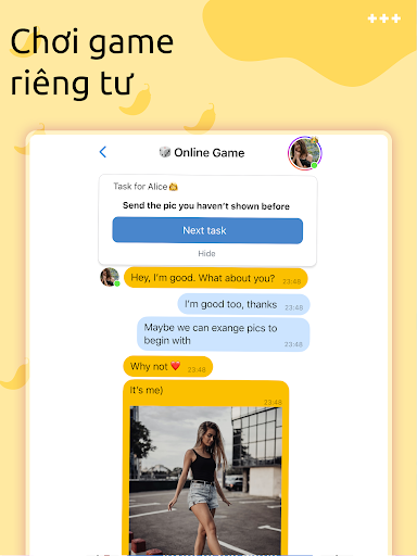 Bạn sẽ có thể trò chuyện trực tuyến, chia sẻ ảnh và trong quá trình giao tiếp, cùng nhau thực hiện các nhiệm vụ bẩn thỉu và trả lời các câu hỏi thẳng thắn (các nhiệm vụ được thiết kế đặc biệt khi các bạn ở khoảng cách xa nhau).