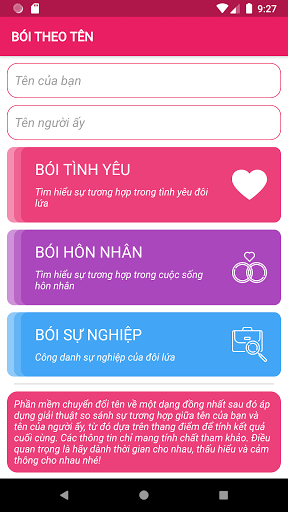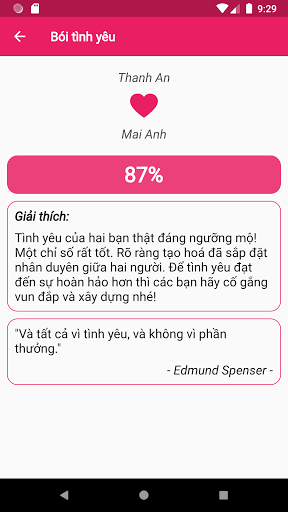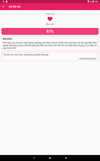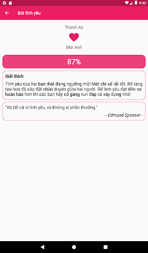 Phần mềm xem bói vui về tình yêu bằng tên sẽ giúp các bạn tìm hiểu sự tương hợp giữa tên của bạn và tên của người ấy