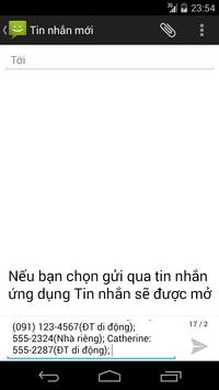 Gửi thông tin liên lạc cho mọi người không còn là nỗi ám ảnh nữa! Bạn không cần phải lấy giấy bút ra để chép lại số rồi gõ thủ công nữa! Chỉ cần chọn tất cả những số điện thoại cần gửi, sau đó bấm nút "Gửi"! Ứng dụng có thể gửi liên lạc có nhiều số điện thoại.