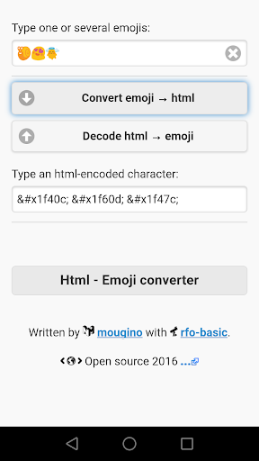 Tiện ích nhỏ để chuyển đổi biểu tượng cảm xúc thành các ký tự được mã hóa HTML, còn gọi là NCR (Tài liệu tham khảo ký tự số) và ngược lại.