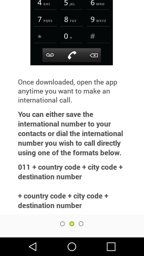 • Import your international phone numbers from your phonebook to the app and make a call.