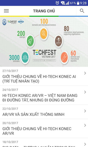 Techfest là ứng dụng cung cấp các thông tin, kết nối các nhà đầu tư và các Startup trong ngày hội công nghệ TECHFEST. Có các chức năng: