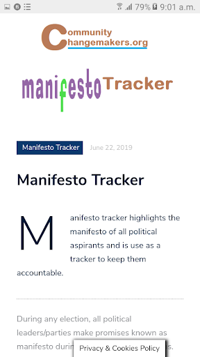 The communitychangemakers uses technology like our smartphone app as a tool that is very effective in capturing and tracking issues, disease and crime outbreak, events, projects, policies in our communities in order to provide sustainable solutions and to engage our leaders for proper attention in addressing these issues.
