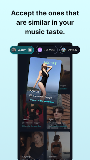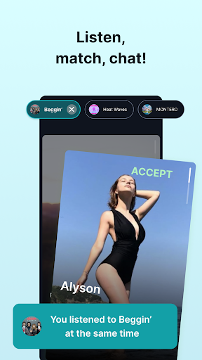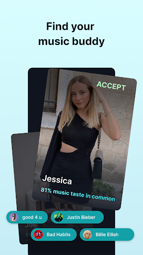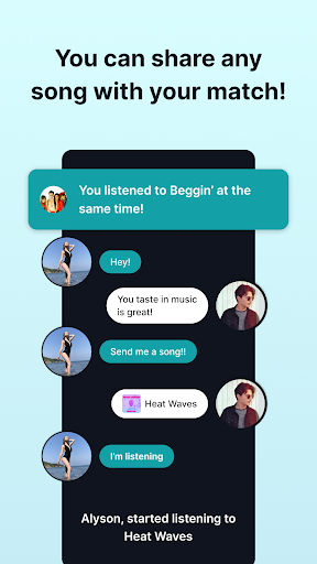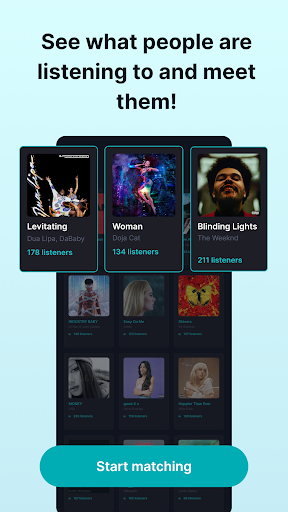 Nếu bạn muốn, bạn có thể khớp theo hồ sơ hoặc âm nhạc bạn nghe ngay lập tức.Nó thế nào?Bằng cách kết nối với tài khoản Spotify của bạn, bạn tích cực chia sẻ với chúng tôi hoặc chia sẻ các nghệ sĩ và bài hát yêu thích của bạn mà bạn đã nghe trước đây.Chúng tôi cũng phù hợp với bạn với những người gần gũi nhất với sở thích của bạn hoặc nghe cùng một bản nhạc cùng một lúc.Bạn có thể bắt đầu trò chuyện sau khi xem hồ sơ của những người bạn phù hợp.