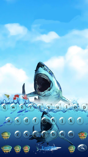 (1)Cool sea shark keyboard theme with 3D dynamic underwater world, golden jellyfish is sparkling, huge sharks make the picture shock;