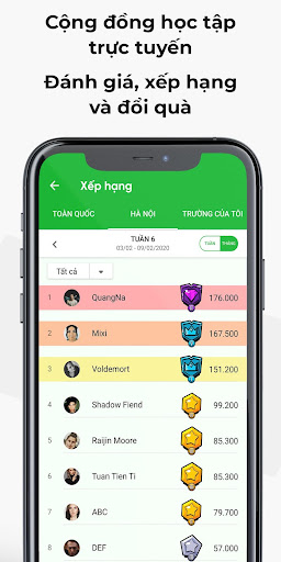 • Đánh giá xếp hạng và đổi quà: Các bạn học sinh được đánh giá năng lực, xếp hạng theo kết quả học tập và nhận nhiều phần quà giá trị khi đạt các mức hạng học tập cao.
