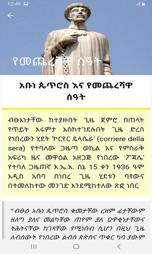 ትውልድ ሁሉ ለሀገር ክብርና ለነጻነት በተከፈለው የብጹዕ አቡነ ጴጥሮስ ሕይወት እንዲማርበትና ሕያው ምስክር ሆኖ እንዲኖር ይህ የሞባይል አፕ (Mobile App) አዘጋጅተን አቅርበናል፡፡