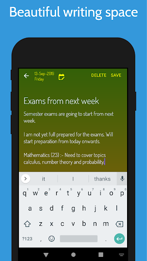 🌟 It has reminder option as well. Once you set a reminder you will be reminded every day to write diary.