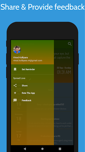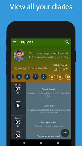🌟 Motivational quote is shown on the front screen to motivate you, every time you open Diary 365.