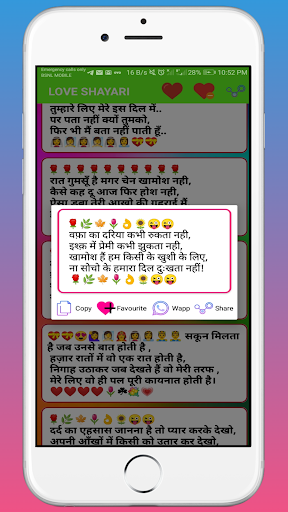 Very easy to use interface just swipe left and right to read the best love shayari in Hindi and easy share to your friends & family