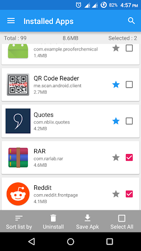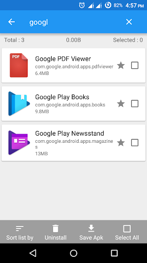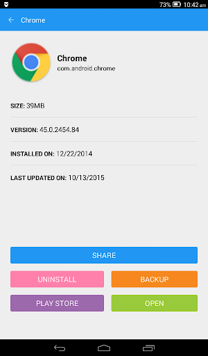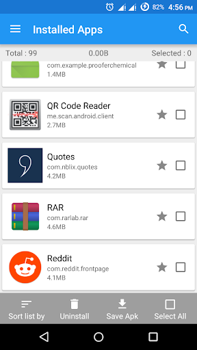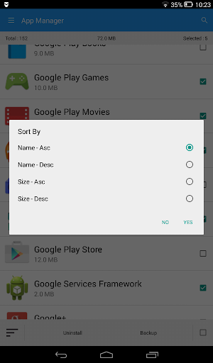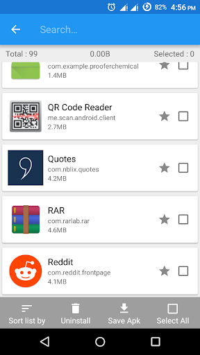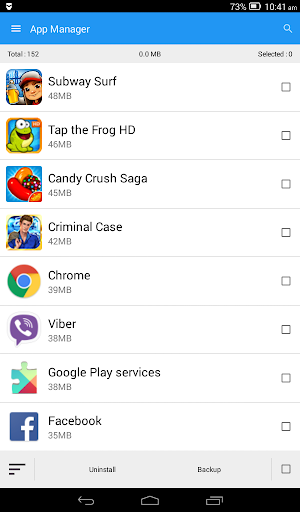 App Manager brings you control to manage all of your installed application at one place. You can take backup, uninstall and view other information about all apps. The main advantage of using app manager is you can take backup of multiple apps simultaneously and also uninstall multiple app simultaneously. You can also have feature to sort all the app alphabetically and their size. You can also able to see the list of extracted apps and install them again from that list.