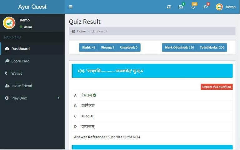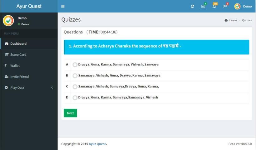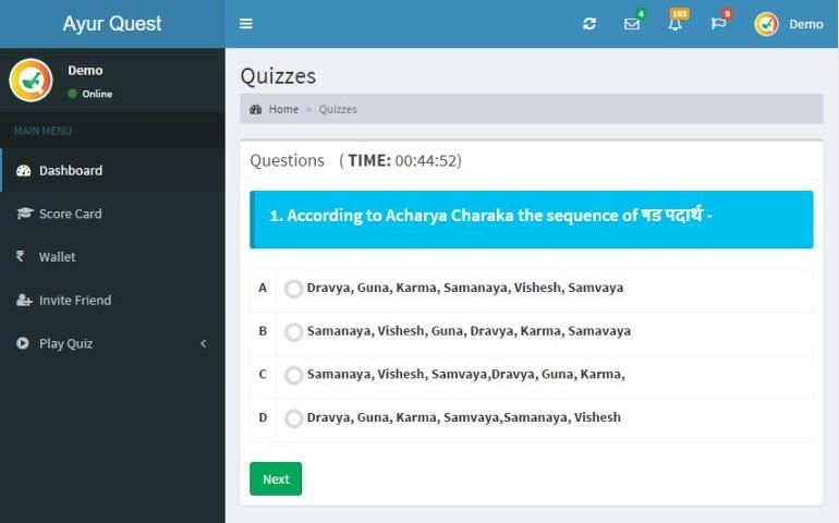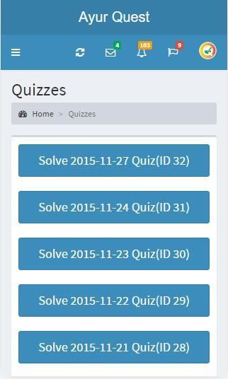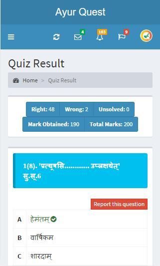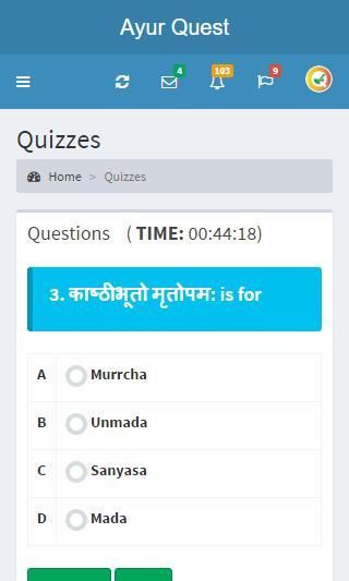 AyurQuest is a pioneer step in the field of Ayurveda providing a platform to crack any Post Graduate Entrance or Ayurveda competitive exams on your finger tips in a non stressful and user friendly way. Different variations of quiz viz. Random Quiz, Samhitawise Quiz, Subjectwise Quiz, Sthanwise Quiz, Chapterwise Quiz, etc. minimize the boredom and maximize the knowledge of the user.
