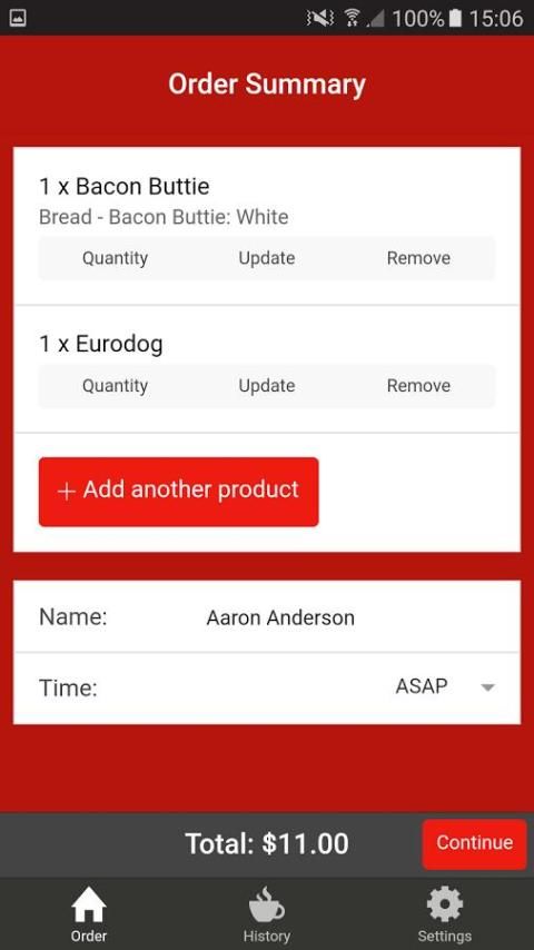 Don’t wait for your food again, just pull out your Android and with a few button clicks, order and pay for your purchase. It will then be ready for you when you arrive at Bacon Buttie Station saving you valuable time.
