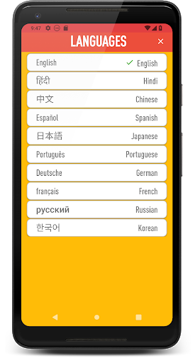 Use this application in many languages: English, Hindi - हिंदी, Chinese - 中文, Spanish - Español, Japanese - 日本語, Portuguese - Português, German - Deutsche, French - français,