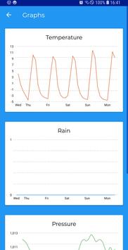 - Graphs to see the trend of temperature, rain and precipitation, wind and atmospheric pressure ...