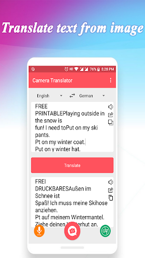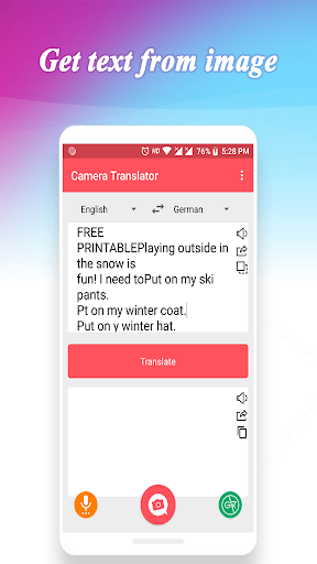 🔔 Camera translator is an application where you can convert your content from one language into another by taking a photo directly from the camera, lifting a photo from a gallery or speaking.