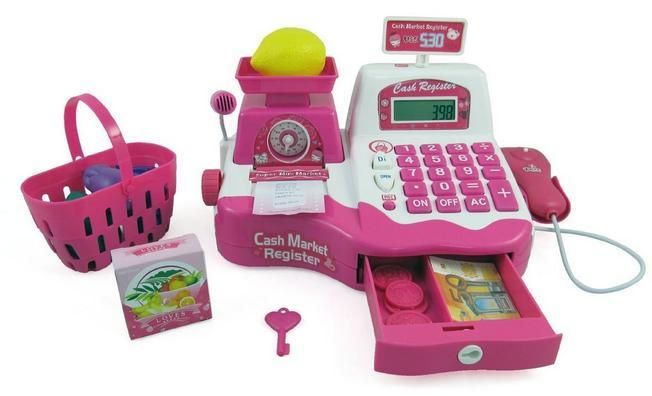 Find everything you need in the supermarket and complete your purchase with this cash register toy. It has working calculator, hand held scanner, credit card reader, money, credit cards, and working microphone! Just swipe the card and press the button, and the drawer shoots open to reveal the cash! With this register, kids can pretend to shop at the grocery store, just like mom and dad! And comes with a key to manually lock or unlock the cash drawer. This is a great gift idea for young kids just learning about math and money!
