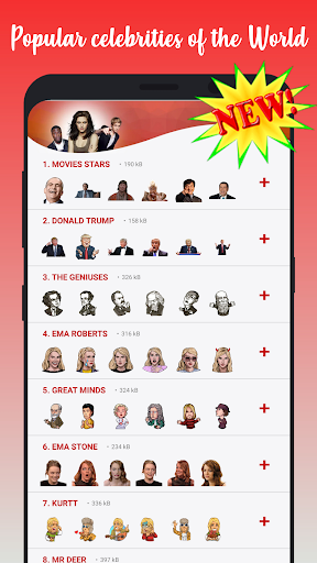 Finally the Celebrity Stickers have arrived to WhatsApp. Enjoy these stickers packs and share them with all your friends. Download this WAStickerApp for free.