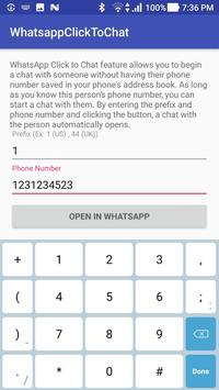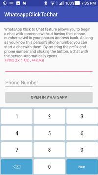 WhatsApp Click to Chat feature allows you to begin a chat with someone without having their phone number saved in your phone's address book. As long as you know this person’s phone number, you can start a chat with them. By entering the prefix and phone number and clicking the button, a chat with the person automatically opens.